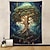 mystinen elämän puu muinainen tammi täysikuu tähtitaivas hehkuvat juuret lumottu metsä fantasiataide seinävaate makuuhuoneen sisustus olohuone seinävaate meditaatiohuone tausta