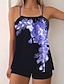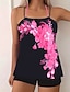 Naisten tankini 2-osainen uimapuku alushousuilla vatsaa tukevalla korkealla vyötäröllä hoikalla selkä ilman lomakesä rannalle kukkakuvioinen ammattikaula hihaton uimapuku