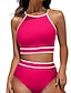 Naisten Uima-asut Bikinit 2 kpl Korkea vyötärö Uimapuku Ohut Avoin selkä Loma Ranta-asut Raita Riipuskaula Hihaton Uimapuvut