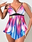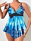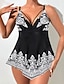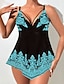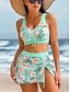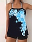 Naisten Uima-asut Tankini 2 kpl Hame Uimapuku Tyylikäs Loma Kuvitettu Trooppinen V kaula-aukko Hihaton Uimapuvut