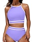 Naisten Tankini 2 Palan Uimapuku Shortsit Vatsan Hallinta Korkea Vyötärö Hoikka Selkä Vapaat Rannalle Ombre Halterneck Hihaton Uimapuku