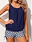 Naisten tankini 2-osainen uimapuku värilohko shortsit aukoton vatsan hallinta korkea vyötärö slim loma rantalaitteet värilohko U-kaulaaukkoinen hihaton uimapuku