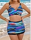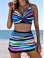 Naisten Uima-asut Tankini Kolme kappaletta Hame Uimapuku Vatsatuki Korkea vyötärö Ohut Avoin selkä Loma Ranta-asut Raidoitettu V kaula-aukko Hihaton Uimapuvut
