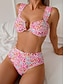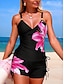 Naisten bikinit 2-osainen uimapuku rypytetty rohkea selkä avoin hoikentava lomaranta-asu kukkakuviolla naru kauluksessa hihaton uimapuku