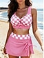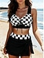 Naisten Uima-asut Bikinit 2 kpl Hame Uimapuku Vatsatuki Korkea vyötärö Ohut Avoin selkä Loma Vintage Kuvitettu Skottiruutukuvio Kauha Hihaton Uimapuvut