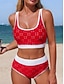 Itsenäisyyspäivä Patriottinen Naisten Tankini 2-osainen Uimahame Lyhennettävä Korkea Vyötärö Hoikka Selkätyylinen Lomamatkalle Ranta Varsiväri Graafinen U-kaula-aukko Hihaton Kylpypuku