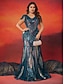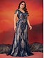 Häntä/Trumpetti kvintonera-mekot tyylikäs mekko muodollinen häitä lattiapituinen lyhyt hiha V-pääntie paljettien kanssa