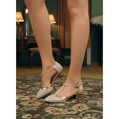 naisten kultaiset kimaltelevat t-rannekengät tanssikengät, matala- ja keskikorkoiset tanssisali latinalaiset performanssikorkokengät salsaan ja tangoon