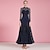 naisten samettinen tanssimekko korkeakauluksinen pitkähihainen verkkomainen liitosvalssipuku kohokuvioitu lehtikuvio vakiokilpailuasu tummansininen