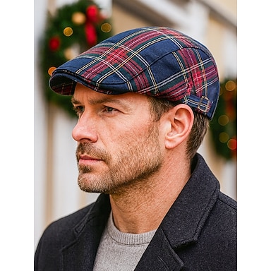 Miesten puuvillainen tartan-litteä lippalakki jouluksi – useita värivaihtoehtoja, tyylikäs ja mukava, täydellinen juhla-asuihin