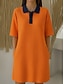 Naisten Polvipituinen mekko Väljä mekko Tartan mekko Klassinen Päivittäin Viikonloppu Loose Fit Väripalikka Lyhythihainen Paitapuserokaula-aukko Valkoinen Vaalean vihreä Oranssi Kesä Kevät