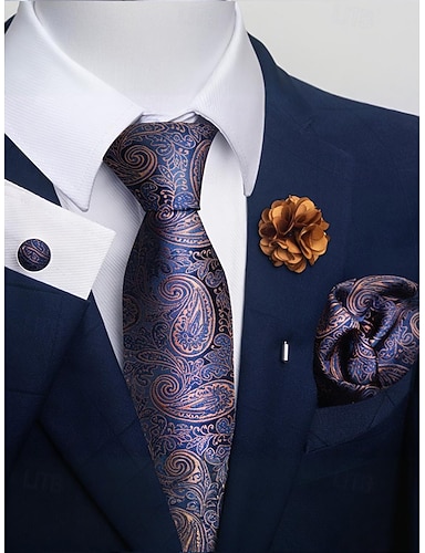 Miesten polyesteristä valmistettu paisley-kuvioinen solmio, kalvosinnapit, taskuliina ja solmiopidike, täydellinen häihin ja lahjaksi