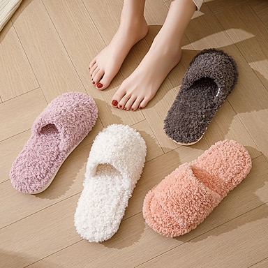 puuvillaiset tohvelit naisille avokärkiset yksivärinen muhkeat sisä- ja kotikäyttöön tarkoitetut pehmeät karvaiset tohvelit perustyyli