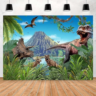 dinosaurusmaailma jurakausi t-rex triceratops tulivuori trooppinen viidakko seinävaate lapset makuuhuoneen sisustus pojat leikkihuone seinävaate syntymäpäiväjuhlat tausta esihistoriallinen luonto