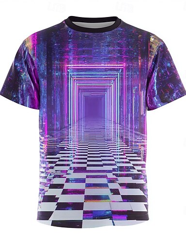 miesten neonvioletti sininen ääretön tunneli ruudullinen lattia synthwave retrowave vaporwave cyberpunk trippy psykedeelinen t-paita tavallinen festivaali rave juhlavaatteet s m l xl xxl xxxl