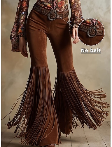 Naisten Housut Teko mokkanahkahousut Leveät housut Leggingsit Loma Vintage Muoti Täyspitkä Korka vyötärö Tavallinen Tupsu Mukavuus Pehmeä Hengittävä Joustamaton ulko- Juhla Katu Viini Musta Valkoinen