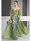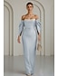 Tuubi Hipaisulaahus Tanssiaispuku viitalla Iltapuku Muodollinen mekko Tyylikäs Kimalteleva Juhlatyyli Pitkähihainen Tiukka pyöreä kaula-aukko Puutarhajuhlat Häät Stretch Crepe kanssa Shaali