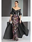 Tuubi Kokopitkä Viittamekko Tanssiaispuku viitalla Iltapuku Muodollinen mekko Tyylikäs Juhlatyyli Pitkähihainen poolokaulus Häät Muodollinen Stretch Crepe kanssa Kirjailtu kukka