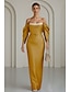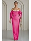 Tuubi Kokopitkä Tanssiaismekot Iltapuku Ball Gown Muodollinen mekko Tyylikäs Silkkinen Hihaton Yksiolkaiminen Häät Muodollinen Viitat Joustava satiini kanssa Shaali