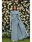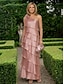 A-linja Tuubi Kokopitkä Helmillä koristeltu Muodollinen mekko Morsiamen äidin mekko Iltapuku Tyylikäs Korkea jaettu 3/4 hiha Olkaimeton Häät Muodollinen Satiini kanssa Kukkapainatus Halkio