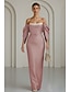Tuubi Kokopitkä Muodollinen mekko Iltapuku Tanssiaismekot Iltapuku Ball Gown Muodollinen mekko Tyylikäs Juhlatyyli Lyhythihainen Olkaimeton Häät Muodollinen kanssa Rypytetty Halkio Kaistale
