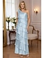Tuubi Kokopitkä Juhlamekko Häävieraspuku Iltapuku Häävieraspuvut Tyylikäs Päivittäin Pitkähihainen Yksiolkaiminen Muodollinen kanssa Rypytetty