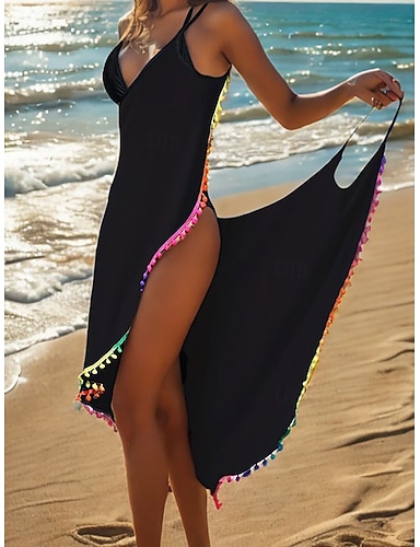 Naisten päällimmäinen uimapuku mekko hapsureuna loma rantalaitteet tasavärinen V-kaulaaukko lyhyet hihat uimapuku
