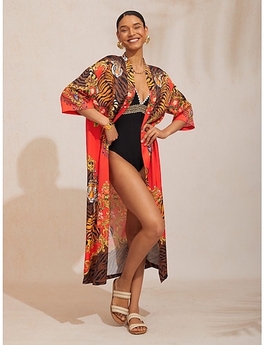 Naisten Uima-asut Yksi kappale Hame Uimapuku Vetoketju Loma Ranta-asut Kuvitettu Lehdet poolokaulus Pitkähihainen Uimapuvut