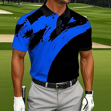 Miesten Geometrinen Golf Polo Urheilu poolopaidat Lyhythihainen Poolopaidat Urheiluasut Urheilu- ja treenivaatteet Ulkoiluvaatteet Arki-asut 3D-tulostus Napit Kesä Rubiini Kuninkaallinen sininen