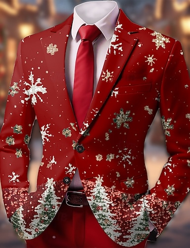 Christmas Miesten Lumihiutale Blazer-takki Takki Mukava Taiteellinen Vapaa-aika Juhla-iltavaatteet Päivittäin Festivaali 3D-tulostus Napit Syystalvi Lovikäänne Pitkähihainen Sininen Rubiini