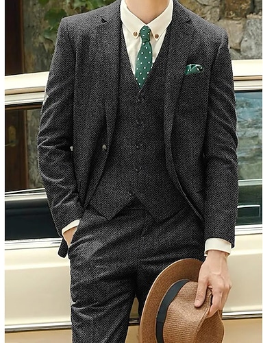 Miesten liiketoiminta Työpuvut Lovikäänne Musta Tumman harmaa Juhla Kalanruoto Räätälöity istuvuus 3-osainen setti