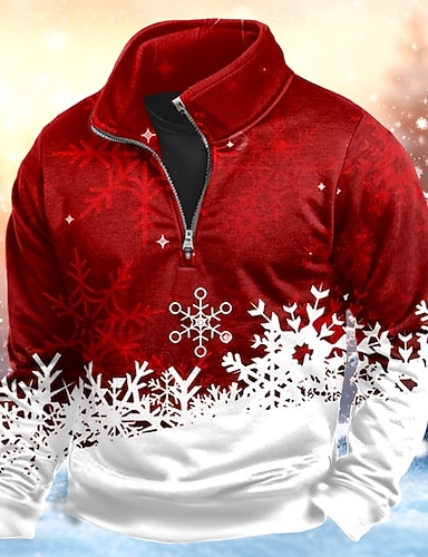 Christmas Miesten 3D Joulu kohtaus College Urheilu Muoti Vapaa-aika Pitkähihainen Vetoketju Koti Juhla Työ Katuvaatteet Rubiini Sininen Purppura Apila Sulkea jnk vetoketju Syksy Kaikki vuodenajat