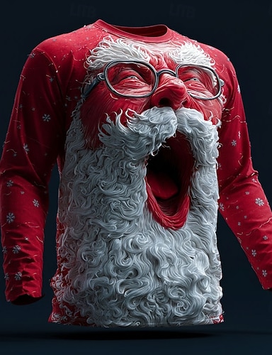Christmas Miesten Joulupukki 3D T-paita Pitkähihainen T-paita 3D-tulostus Tiukka pyöreä kaula-aukko Paita Muoti Perus 3D Katu Kausaliteetti Päivittäin Valkoinen Rubiini Punainen 2 Kesä Kevät Vaatetus