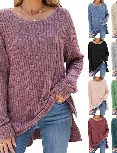 Naisten Pusero Yhtenäinen väri Tyylikäs Vapaa-aika Pitkähihainen Tiukka pyöreä kaula-aukko Tavalliset topit Päivittäin Rypytetty Ruohonvihreä Musta Punastuvan vaaleanpunainen Viini Sininen Kevät
