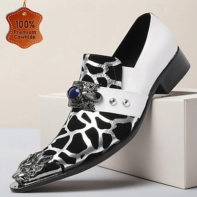 Miesten moniväriset painetut loaferit, teräväkärkiset, metallikorkilliset pukukengät häihin, juhliin, tanssiaisiin, muotinäytöksiin, yökerhoihin ja ylelliseen iltatyyliin