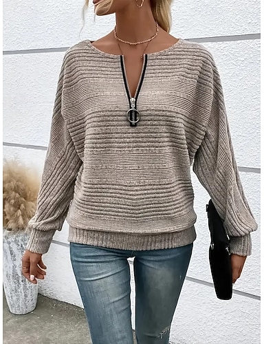 Naisten Pusero Yhtenäinen väri Tyylikäs Vapaa-aika Pitkähihainen Tiukka pyöreä kaula-aukko Tavalliset topit Päivittäin Vetoketju Musta Punastuvan vaaleanpunainen Apila Khaki Harmaa Kevät Syksy Talvi