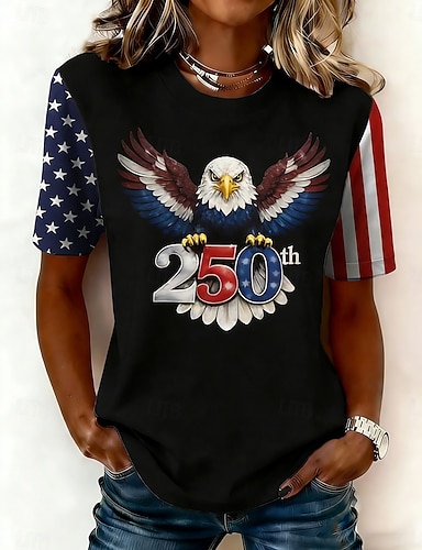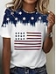 Itsenäisyyspäivä Patrianottinen Naisen T-paita Printti Graafinen Kirjain Amerikkalainen lippu Tyylikäs Klassinen Rentouttava Lyhythihainen Pyöreä kaula Normaalit Huippu Päivittäinen Sininen Musta