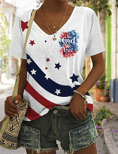 Itsenäisyyspäivä Patriottinen Naisen T-paita Graafinen Lippu Vintage Tyylikäs Klassinen Lyhythihainen V-kaula Säännölliset Paidat Päivittäinen Printti Valkoinen Kesä Kevät