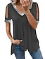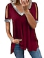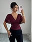 Naisten Pusero Yhtenäinen väri Tavallinen Tyylikäs Vintage Muoti Lyhythihainen V kaula-aukko Avattava pääntie Tavalliset topit purppura Kahvinruskea Musta Armeijan vihreä Kesä Kevät