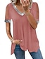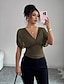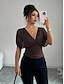 Naisten Pusero Rypytetty Yhtenäinen väri Tyylikäs Päivittäin naiset Lyhythihainen V kaula-aukko Tavalliset topit Päivittäin Työ Pyhäpäivä Green-järvi Musta Valkoinen Punastuvan vaaleanpunainen