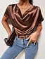 Naisten Tyylikäs Satiinitoppi Pusero Mekkoiset topit Rypytetty Tilkkutäkki Laskostettu Tavallinen Tyylikäs Vintage naiset Hihaton V kaula-aukko Tavalliset topit Päivittäin Työ Pyhäpäivä Ruskea Kes