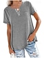 Naisten Kesän yläosat Pusero Rypytetty Tilkkutäkki Tasku Yhtenäinen väri Tavallinen Tyylikäs Vintage naiset Lyhythihainen V kaula-aukko Tavalliset topit Päivittäin Työ Pyhäpäivä Punastuvan