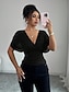 Naisten Kesän yläosat Pusero Rypytetty Tilkkutäkki Tasku Yhtenäinen väri Tavallinen Tyylikäs Vintage naiset Lyhythihainen V kaula-aukko Tavalliset topit Päivittäin Työ Pyhäpäivä Musta Valkoinen