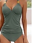 Naisten tankini 2-osainen uimapuku rypytetty lyhyet alushousut vatsan muotoilu korkea vyötärö kapeat avonaiset lomarannalle yksivärinen ylipitkä kaula-aukko olkaimeton uimapuku