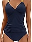 Naisten tankini 2 osanen uimapuku rypytetty hameen kanssa lyhyet hameet vatsan kontrolli korkea vyötärö hoikka avonainen elegantti loma yksivärinen V-kaulaauhjeluuden hihaton uimapuku