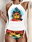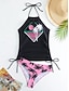 Naisten tankini 2-osainen uimapuku leopardikuvioinen cheeki vatsan tuki korkea vyötärö slim selkä avoin lomaranta-asu kukkakuviolla halterneck hihaton uimapuku