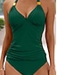 Naisten tankini 2-osainen uimapuku rypytetty palmuhame vatsahallinta korkea vyötärö hoikka selkäosa lomaranta-asuste kukkakaula-aukko ilman hihoja uimapuvut