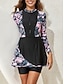 Naisten tankini 2-osainen uimapuku vetoketju eteen palm shortsit vatsan hallinta korkea vyötärö hoikentava avonainen selkä lomaranta-asu kukkakuvioinen pyöreä kaula-aukko pitkähihaisena uimapuku