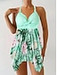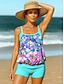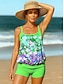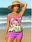 Naisten tankini 2-osainen uimapuku kerrostettu alushousut vatsan hallinta korkea vyötärö hoikka selkä avoin loma rantaasu kukkakuviot U-kaulaaukko hihaton