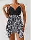 Naisten tankini 2-osainen uimapuku rypytetty leopardikuosi cheecky avoin lomaranta-asu graafinen halter-pääntie hihattomat uimapuvut